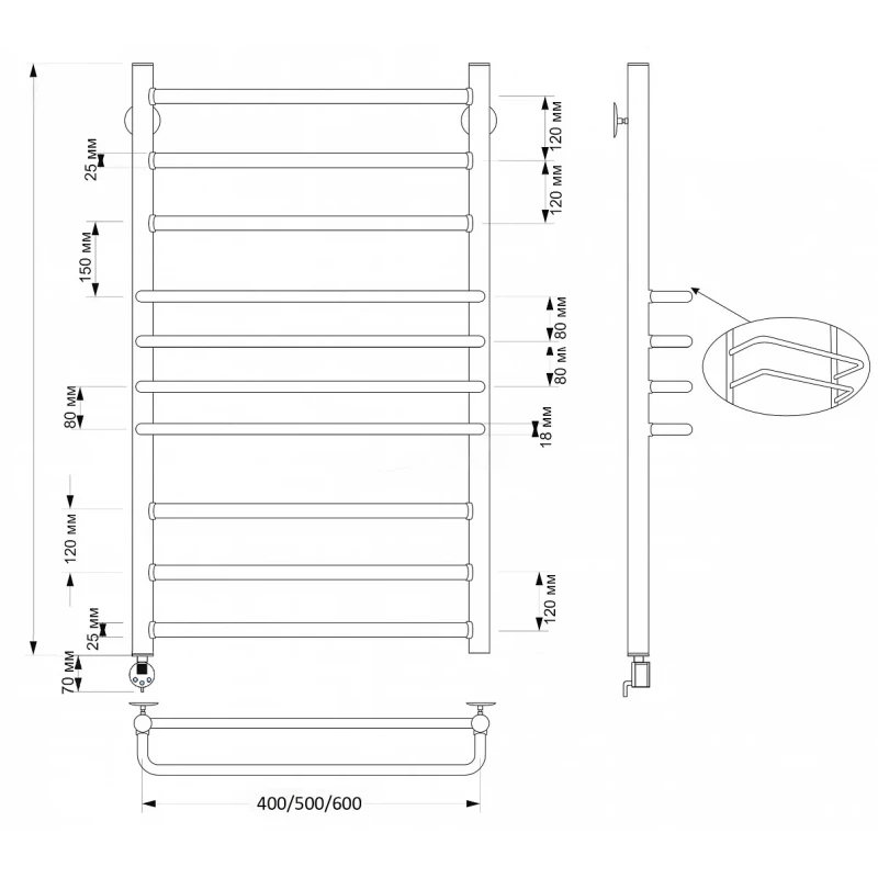Полотенцесушитель электрический 670x700 ТЭН левый Secado Венеция 2 4603777454333