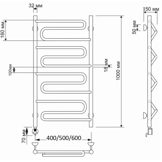 Полотенцесушитель электрический 1270x432 ТЭН левый Secado Валенсия 4603777470029