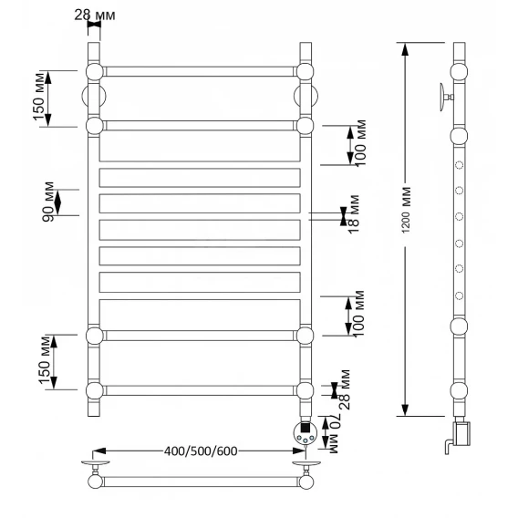 Полотенцесушитель электрический 870x700 ТЭН левый Secado Турин 6 4603777456146