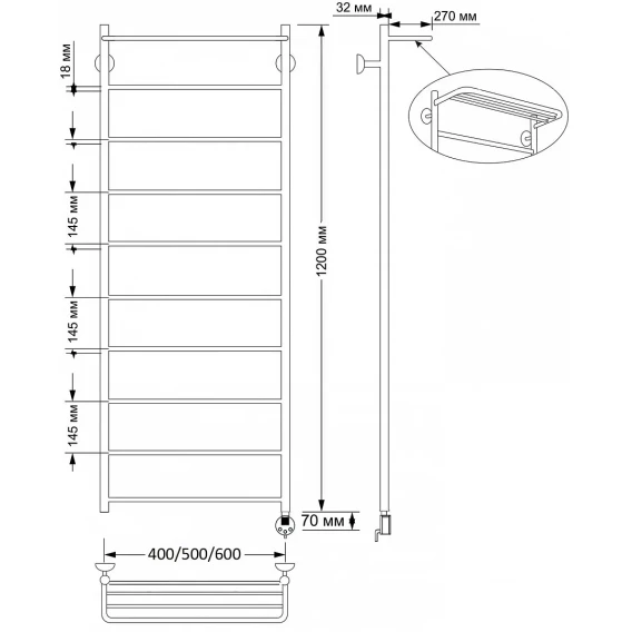 Полотенцесушитель электрический 1070x432 ТЭН правый Secado Милан 2 4603777463021
