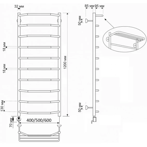 Полотенцесушитель электрический 1270x532 ТЭН левый Secado Агата 3 4603777469672