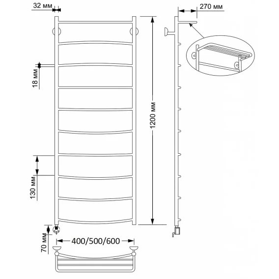 Полотенцесушитель электрический 870x532 ТЭН левый Secado Милан 5 4603759403335