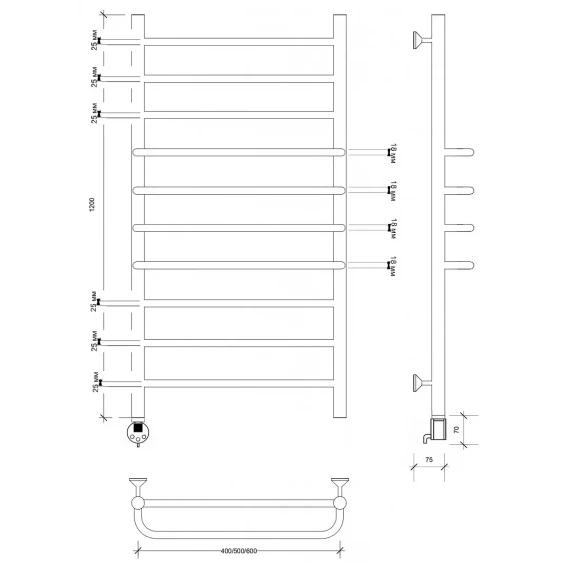 Полотенцесушитель электрический 870x532 ТЭН правый Secado Триада 3 4603759409740