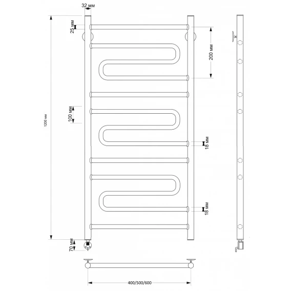 Полотенцесушитель электрический 670x632 ТЭН левый Secado Валенсия 4603777464493