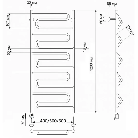 Полотенцесушитель электрический 1270x532 ТЭН левый Secado Валенсия 4603777470050