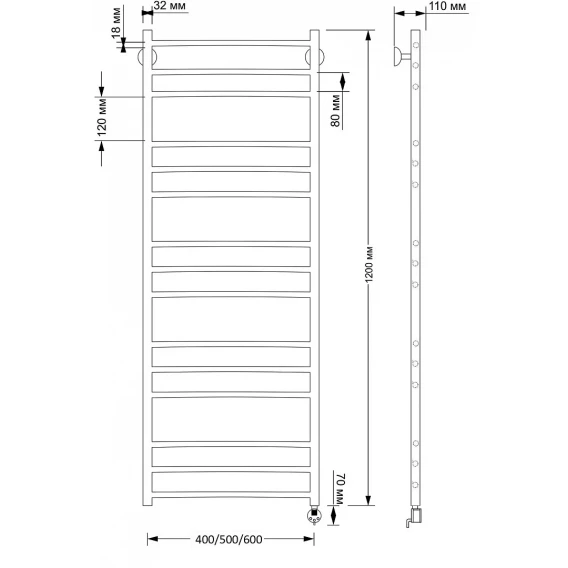 Полотенцесушитель электрический 1270x532 ТЭН правый Secado Триада 3 4603777469160