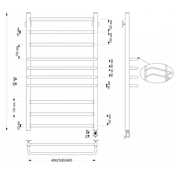 Полотенцесушитель электрический 870x632 ТЭН правый Secado Милан 2 4603777463151