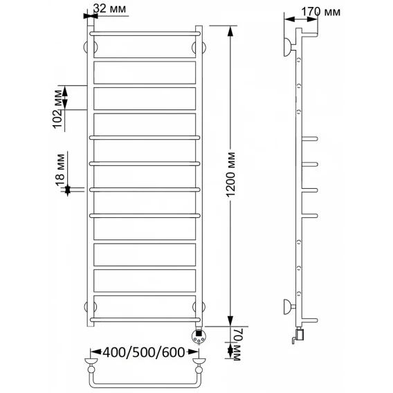Полотенцесушитель электрический 1270x532 ТЭН правый Secado Верона 1 4603777464196