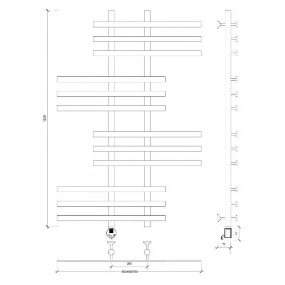 Полотенцесушитель электрический 670x700 ТЭН правый Secado Турин 5 4603777455972