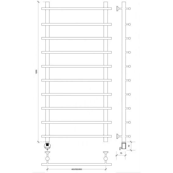 Полотенцесушитель электрический 670x530 ТЭН правый Secado Корато 1 4603777470982