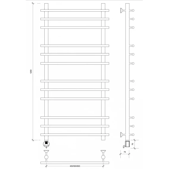 Полотенцесушитель электрический 1270x630 ТЭН правый Secado Комано 3 4603759401522