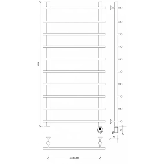 Полотенцесушитель электрический 670x500 ТЭН левый Secado Турин 3 4603759407333