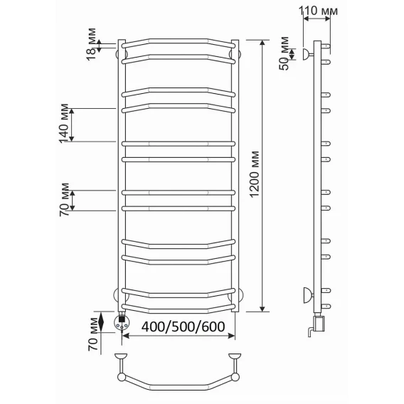Полотенцесушитель электрический 670x532 ТЭН правый Secado Милан 4 4603759409122