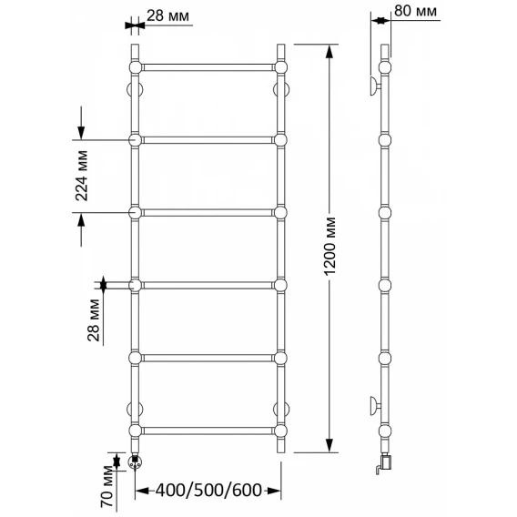 Полотенцесушитель электрический 1070x532 ТЭН правый Secado Мерида 2 4603777463823