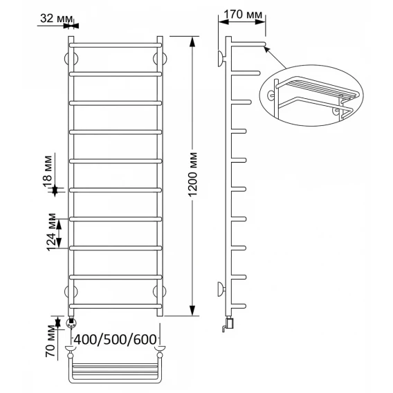 Полотенцесушитель электрический 1270x632 ТЭН левый Secado Мерида 2 4603777463885