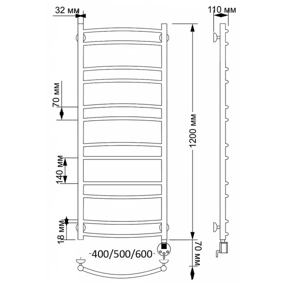 Полотенцесушитель электрический 1070x632 ТЭН правый Secado Милан 2 4603777463175