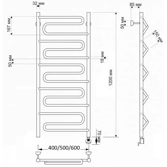 Полотенцесушитель электрический 870x530 ТЭН левый Secado Корато 1 4603777441586