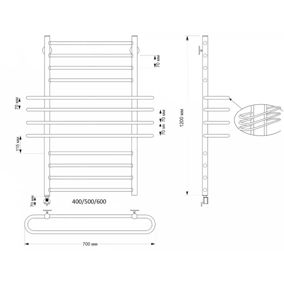 Полотенцесушитель электрический 670x700 ТЭН правый Secado Турин 6 4603777456115