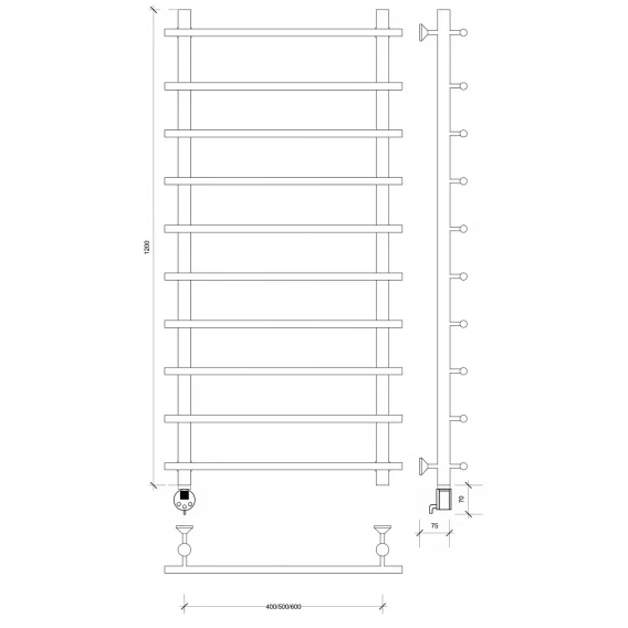 Полотенцесушитель электрический 670x500 ТЭН левый Secado Турин 1 4673739248720
