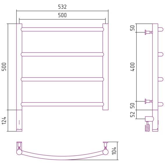 Полотенцесушитель электрический 500x500 белый матовый МЭМ левый Сунержа Галант 3.0 30-5800-5050