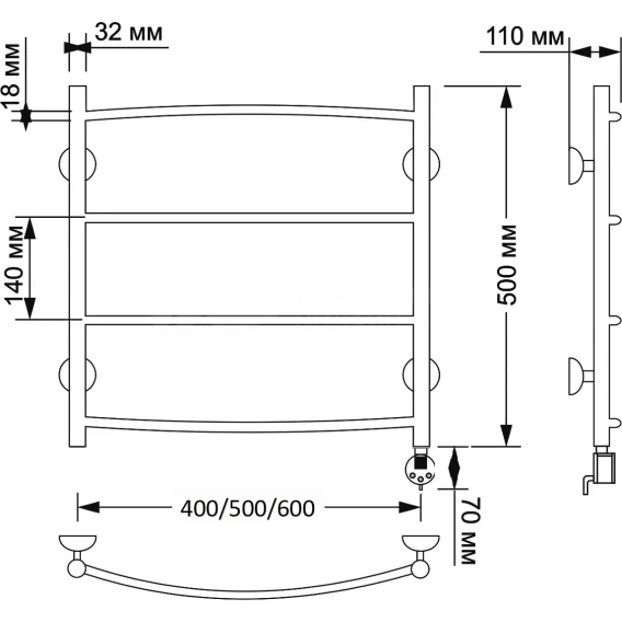 Полотенцесушитель электрический 570x432 ТЭН правый Secado Милан 1 4603777462376