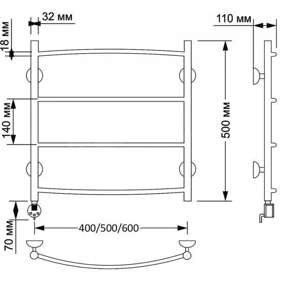 Полотенцесушитель электрический 570x632 ТЭН левый Secado Милан 1 4603777462543