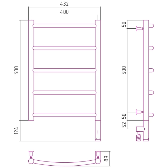 Полотенцесушитель электрический 600x400 белый матовый МЭМ правый Сунержа Галант 3.0 30-5801-6040