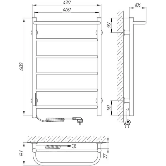 Полотенцесушитель электрический 600x430 диммер слева Laris Прайм П6 73207647