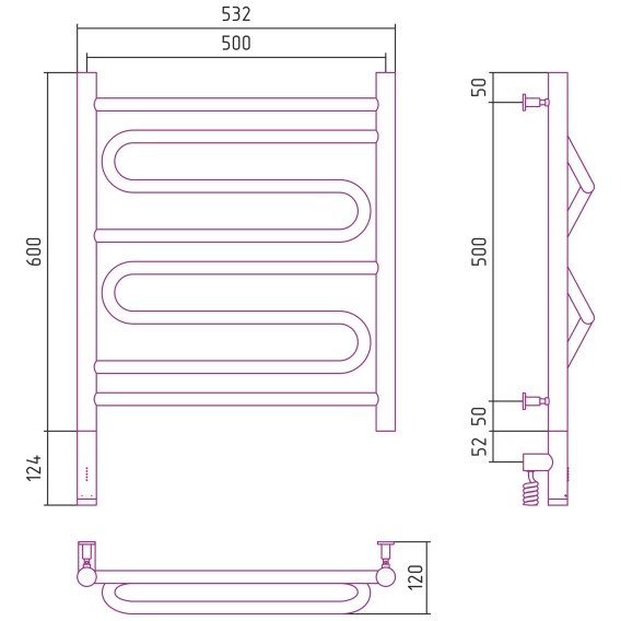 Полотенцесушитель электрический 600x500 белый глянец МЭМ левый Сунержа Элегия 3.0 12-5818-6050