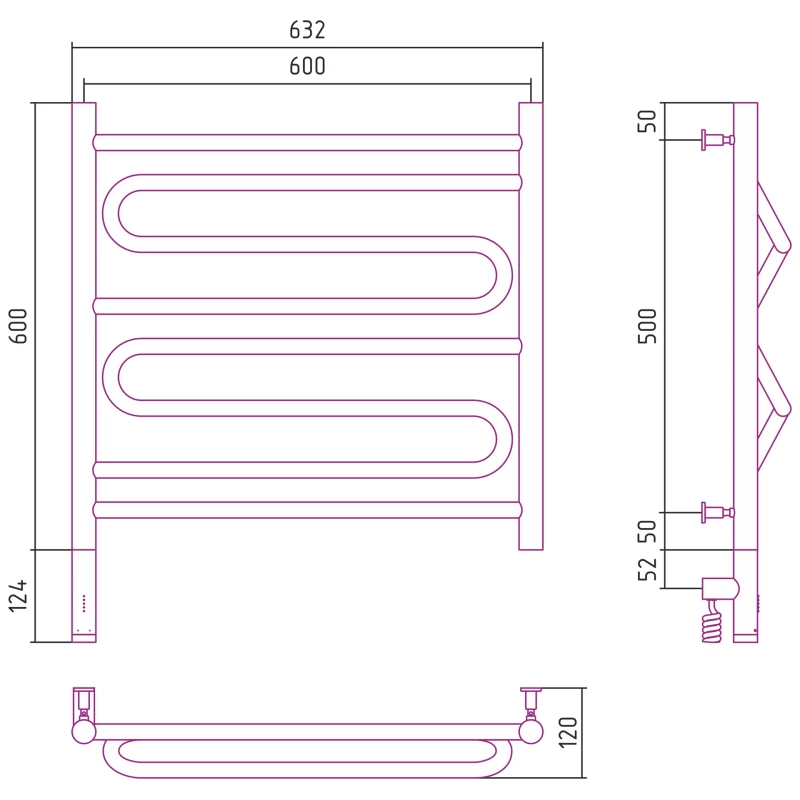ТЭН Terma MEG 600 Ватт под розетку, матовый хром