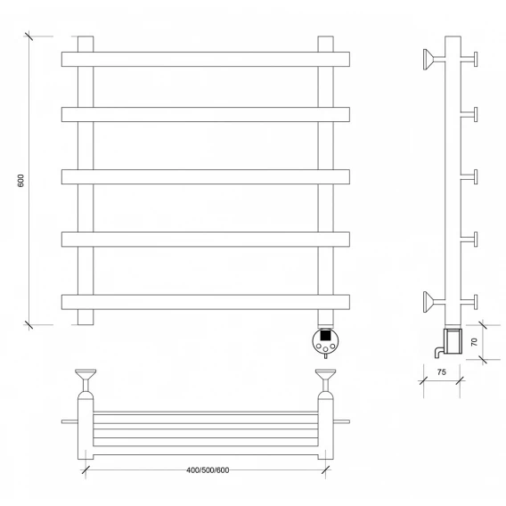 Полотенцесушитель электрический 670x600 ТЭН левый Secado Турин 3 4603777455620