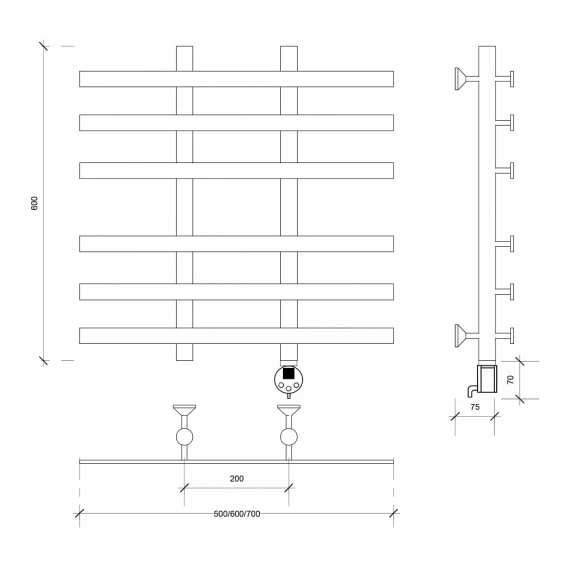 Полотенцесушитель электрический 670x500 ТЭН левый Secado Турин 4 4603759407371