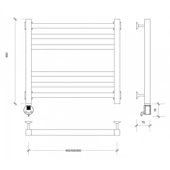Полотенцесушитель электрический 670x600 ТЭН правый Secado Турин 3 4673739249352