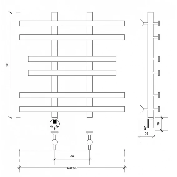 Полотенцесушитель электрический 670x600 ТЭН левый Secado Понтида 2 4603777456948
