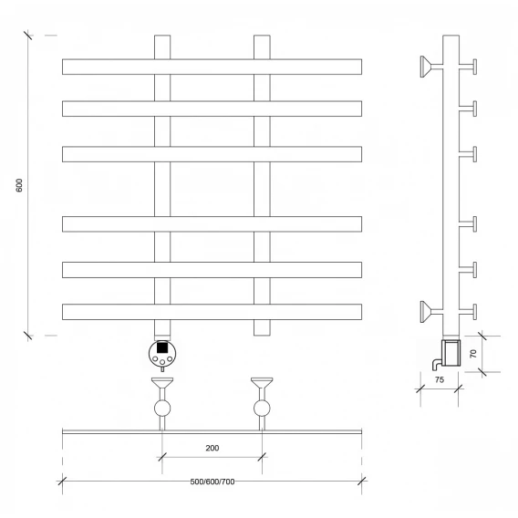 Полотенцесушитель электрический 670x600 ТЭН левый Secado Понтида 4 4603777457228