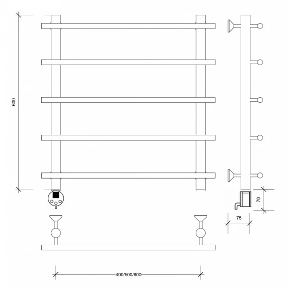Полотенцесушитель электрический 670x600 ТЭН левый Secado Турин 1 4603759407210