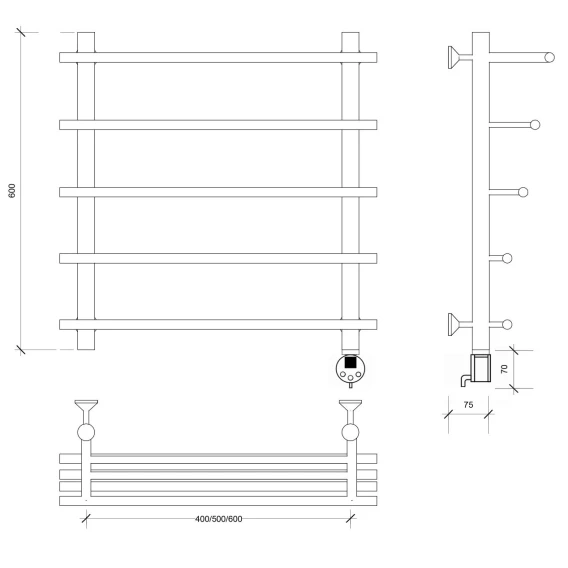 Полотенцесушитель электрический 670x600 ТЭН правый Secado Турин 6 4603777440299
