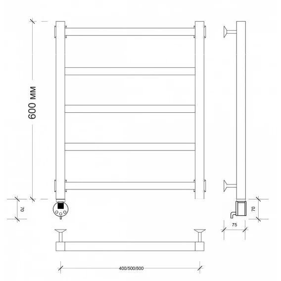 Полотенцесушитель электрический 670x700 ТЭН правый Secado Турин 6 4603777456115