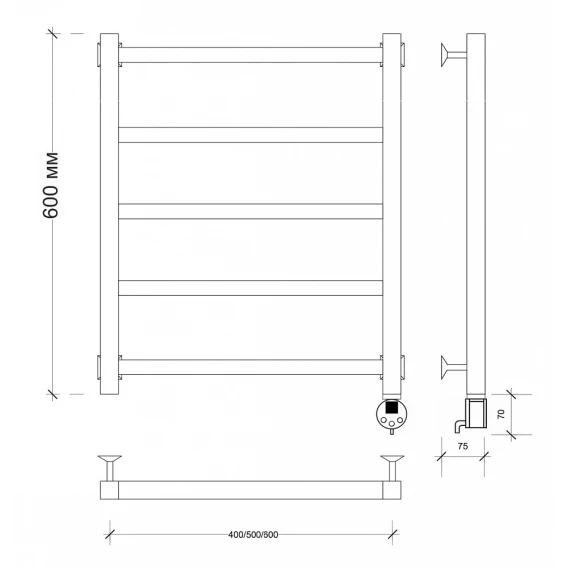 Полотенцесушитель электрический 670x630 ТЭН правый Secado Корато 1 4603777470999