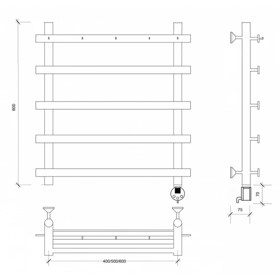 Полотенцесушитель электрический 670x500 ТЭН левый Secado Турин 4 4603759407371