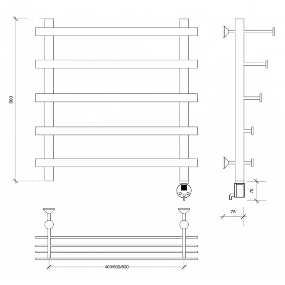 Полотенцесушитель электрический 670x600 ТЭН левый Secado Турин 3 4603777455620