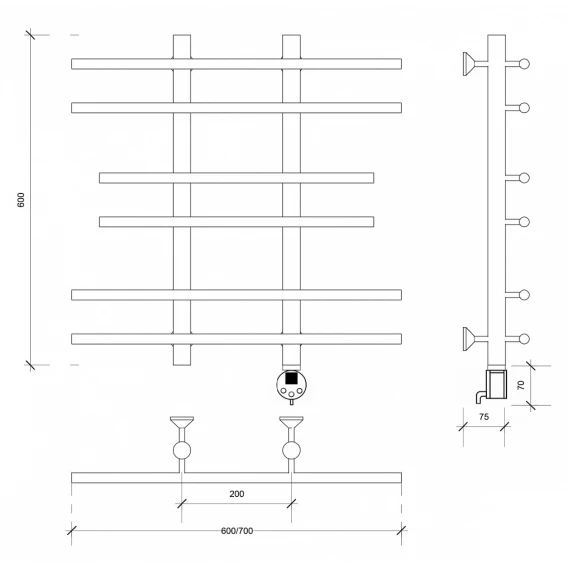 Полотенцесушитель электрический 670x700 ТЭН правый Secado Турин 2 4603777455538
