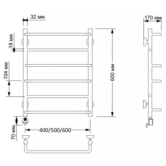 Полотенцесушитель электрический 670x432 ТЭН левый Secado Верона 1 4603777464059