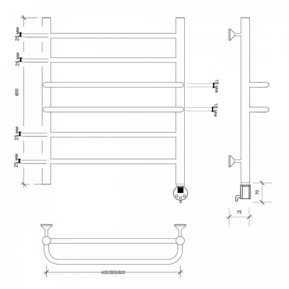 Полотенцесушитель электрический 670x432 ТЭН правый Secado Триест 4673739248119