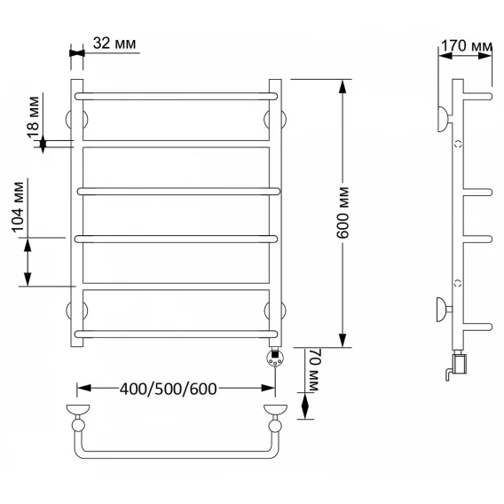 Полотенцесушитель электрический 670x432 ТЭН правый Secado Верона 1 4603777464066
