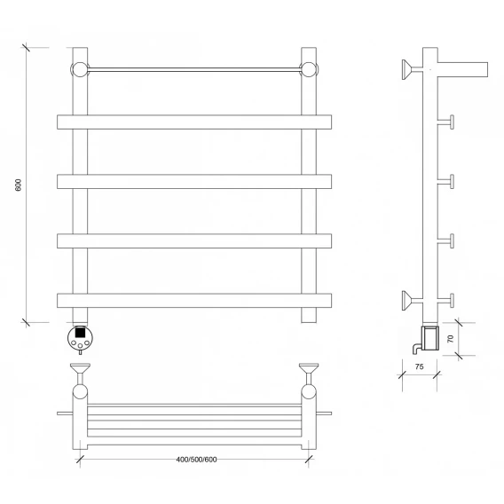 Полотенцесушитель электрический 670x600 ТЭН левый Secado Турин 3 4603777455620