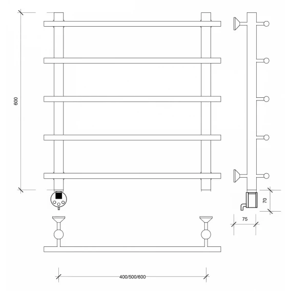 Полотенцесушитель электрический 670x500 ТЭН левый Secado Турин 1 4673739248720