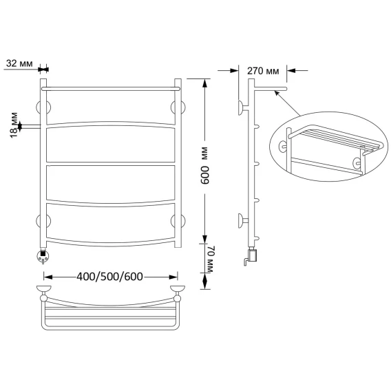 Полотенцесушитель электрический 670x532 ТЭН левый Secado Милан 4 4603777469832