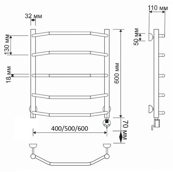 Полотенцесушитель электрический 570x432 ТЭН правый Secado Триада 1 4603777460921