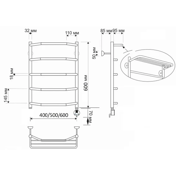 Полотенцесушитель электрический 570x432 ТЭН правый Secado Триада 1 4603777460921